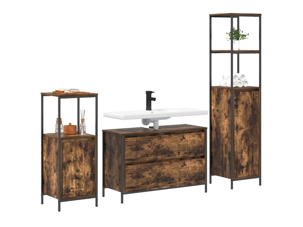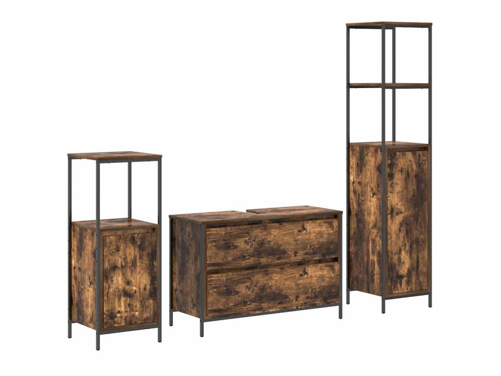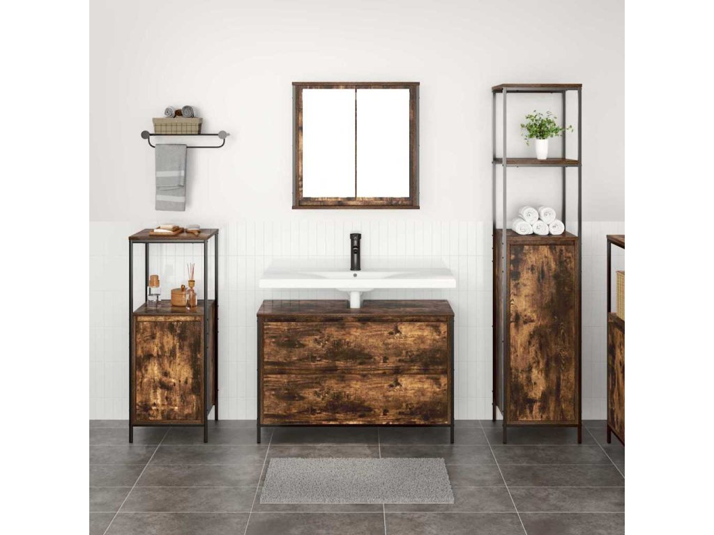 Sada koupelnového nábytku s policí se dveřmi 3 pcs Kouřový dub 3328361