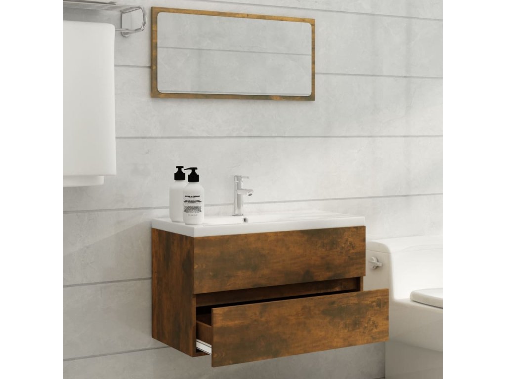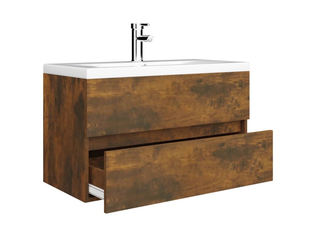 Umyvadlová skříňka s vestavěným umyvadlem kouřový dub kompozit 3120345