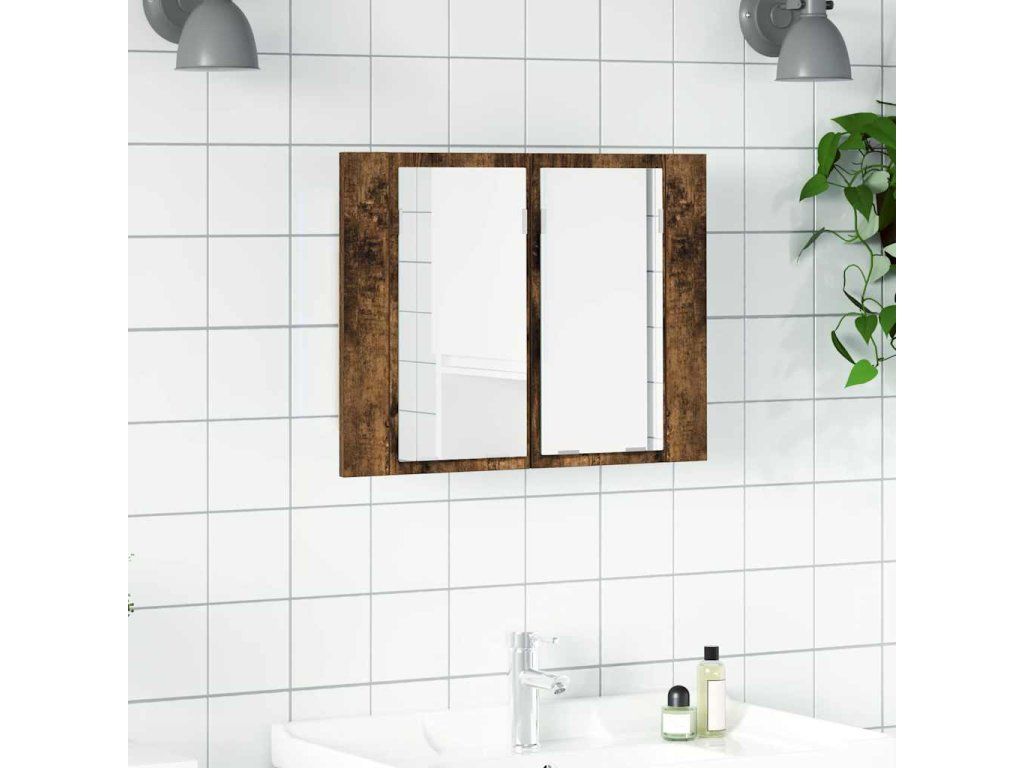 Zrcadlová skříňka s LED kouřový dub 60x12x45cm kompozitní dřevo 822841