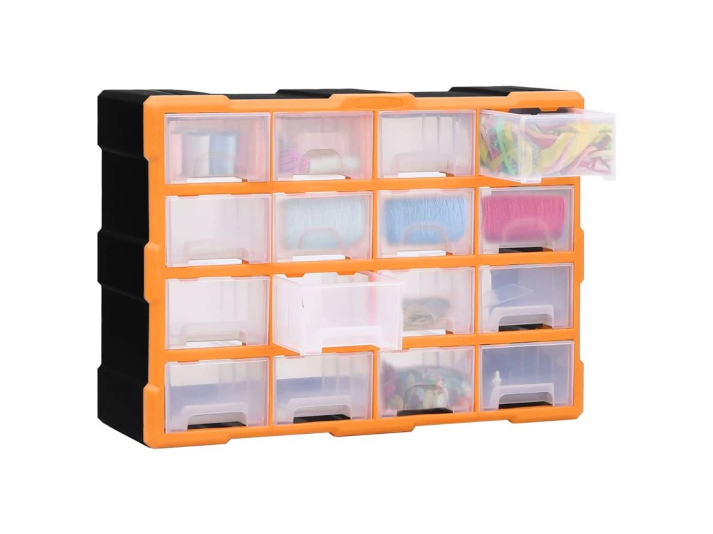 Úložný box obsahuje 16 středních zásuvek, aby vyhověl vašim každodenním potřebám. Pomůže vám přehledně si uspořádat své nářadí a další příslušenství, jako jsou upevňovací materiály, které budete mít nyní vždy po ruce. Skříňka je vyrobená z nárazuvzdorného plastu, je tedy jak odolná, tak stabilní. Zásuvky z průhledného plastu umožňují snadné a rychlé rozpoznání obsahu. Box se skvěle hodí k ukládání matic, šroubů, hřebíků a dalších upevňovacích dílů a příslušenství obecně.