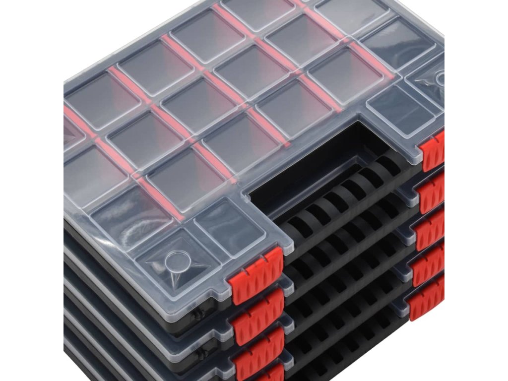 Tato praktická sada organizérů na součástky s nastavitelnými přepážkami je skvělým pomocníkem do garáže, dílny a na podobná místa!