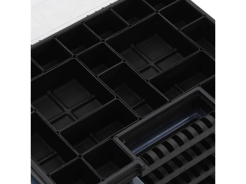 - Široké uplatnění: Tento praktický box na součástky je vynikající volbou pro všechny, kdo při kutilství a ručních pracích oceňují pořádek a přehled, a dokonce i pro profesionály na pracovišti.