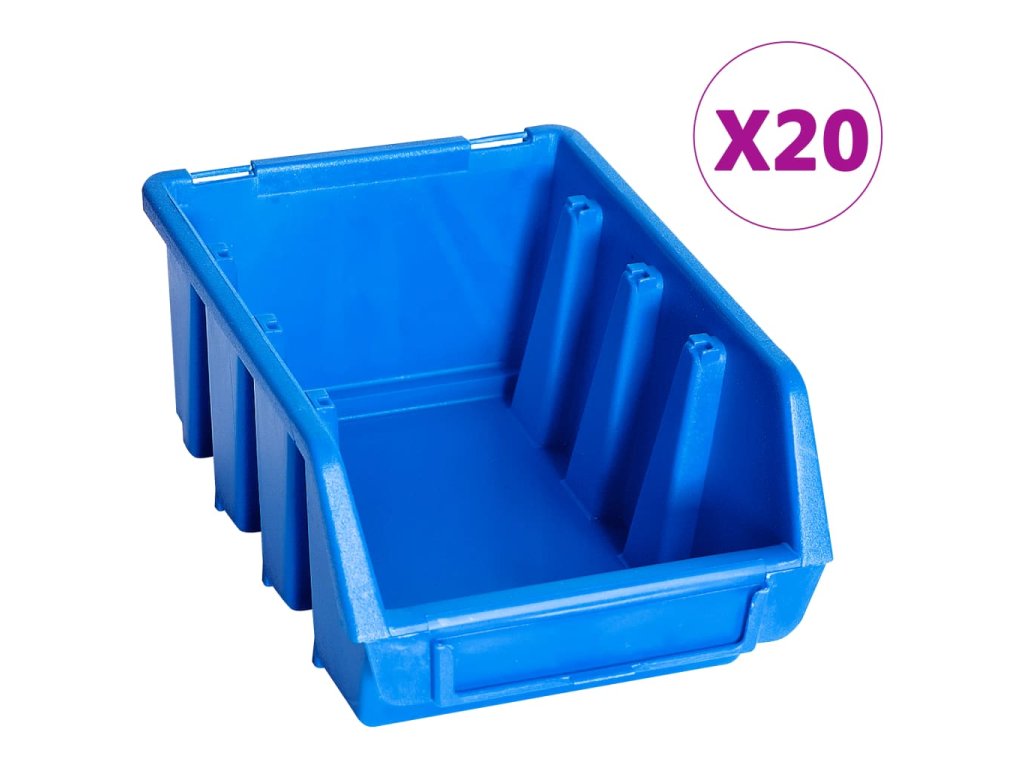 Stohovatelné úložné zásobníky 20 ks modré plast 146284