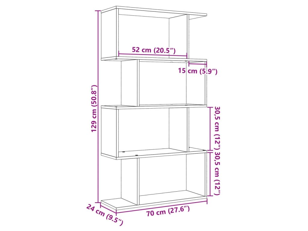 Dělicí stěna, knihovna, 4 úrovně, bílá, 70 x 24 x 129 cm, z umělého dřeva 858102