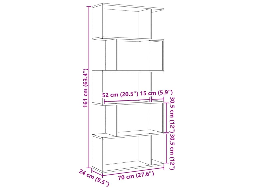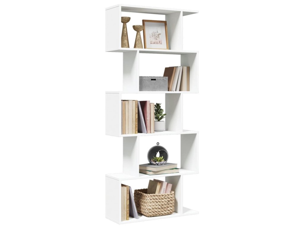 Dělicí stěna, knihovna, 5patrová, bílá, 70 x 24 x 161 cm, z umělého dřeva 858093