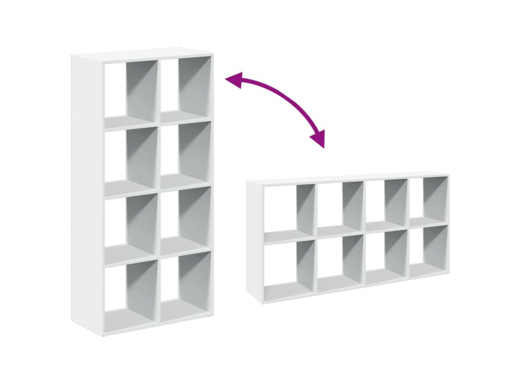 - Dostatek úložného prostoru: Knihovna má osm krychlových přihrádek, které jsou ideální pro organizaci knih, dekorací a dalších předmětů pro domácnost.