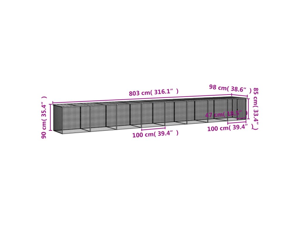Klec pro kuřata se střechou světle šedá 803 x 98 x 90 cm ocel 3189057