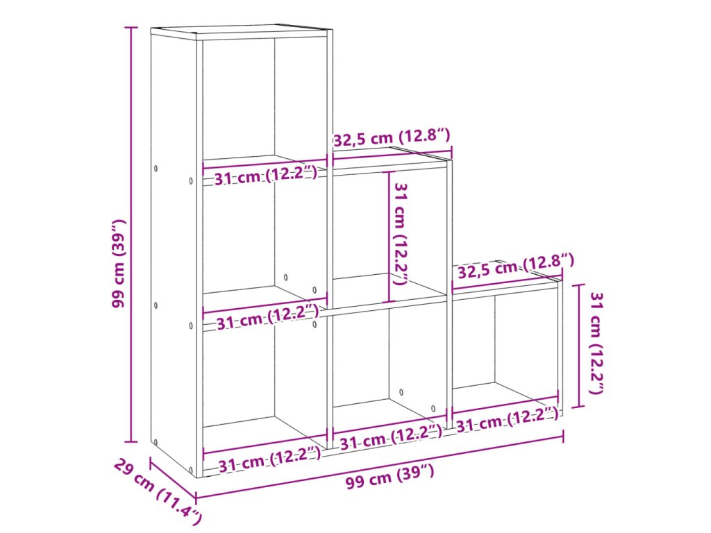 - Dostatek úložného prostoru: Regál na knihy má šest krychlových přihrádek, které jsou ideální pro uspořádání knih, dekorací a dalších předmětů v domácnosti.