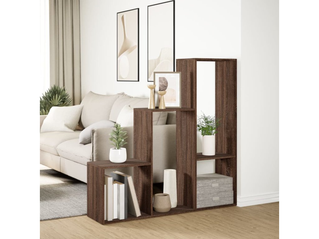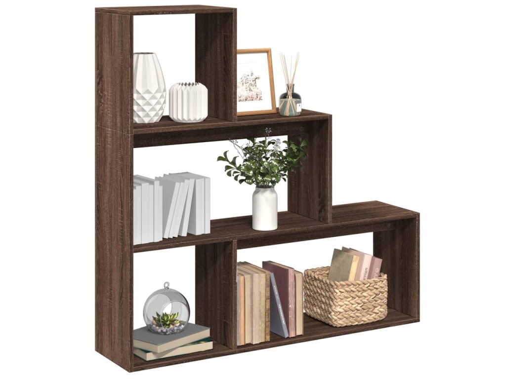 Knihovna/dělící stěna 3patrová hnědý dub 123x29x123 cm kompozit 857991