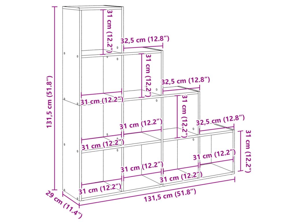 Knihovna/dělící stěna 4patrová dub sonoma 131,5x29x131,5 cm 857969