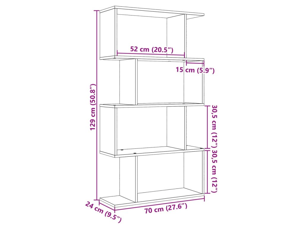 Knihovna/dělící stěna 4patrová old wood 70x24x129 cm kompozit 858109