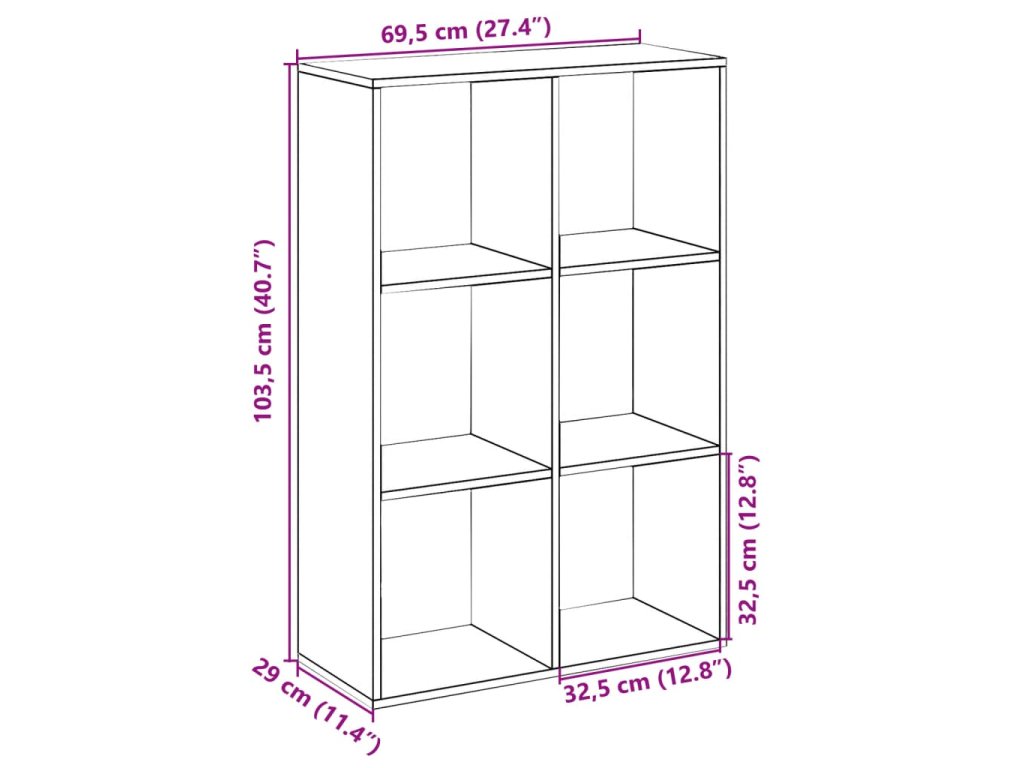 - Dostatek úložného prostoru: Regál na knihy má šest krychlových přihrádek, které jsou ideální pro uspořádání knih, dekorací a dalších předmětů v domácnosti.