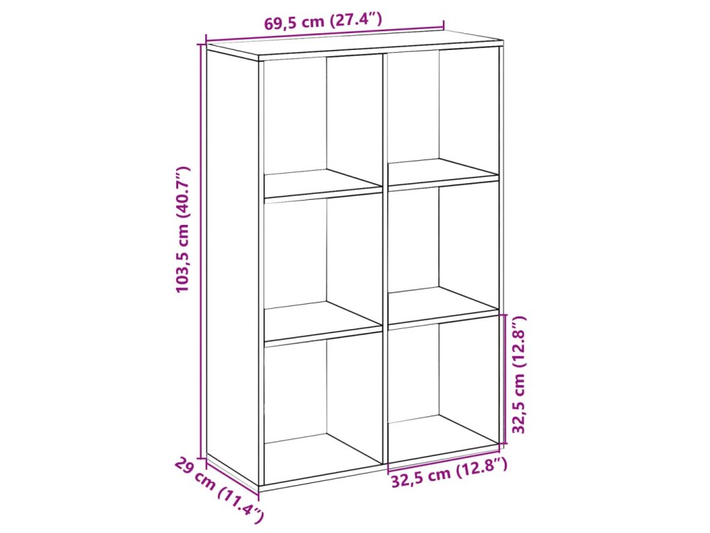 - Dostatek úložného prostoru: Regál na knihy má šest krychlových přihrádek, které jsou ideální pro uspořádání knih, dekorací a dalších předmětů v domácnosti.
