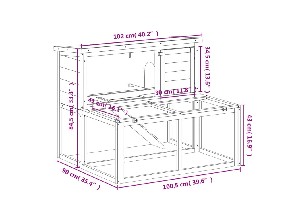 Tato králíkárna s velkým prostorem a místem na spaní nabízí bezpečný a pohodlný prostor pro hru a odpočinek vašich chlupatých přátel, jako jsou králíci, morčata, malé kachny a další malá domácí zvířata.
