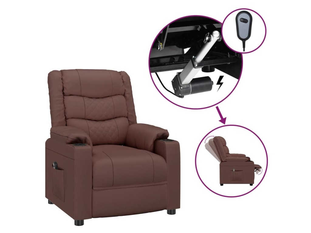 Elektrické polohovací křeslo hnědé umělá kůže 3143451