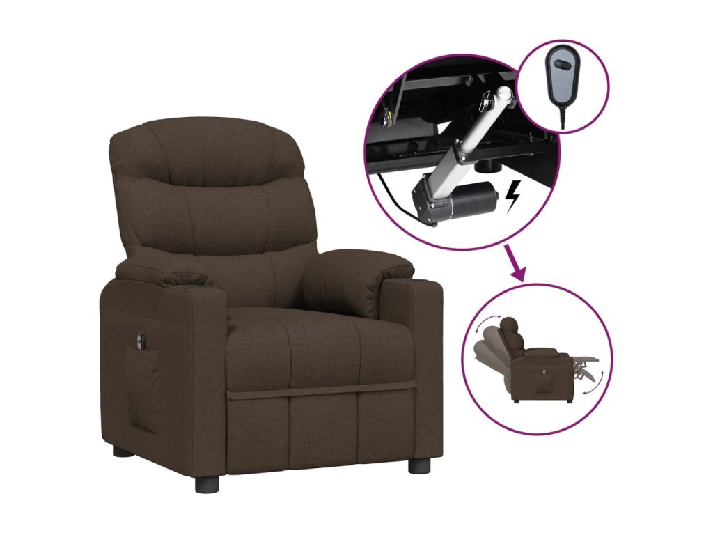 Elektrické polohovací křeslo tmavě hnědé textil 3143496