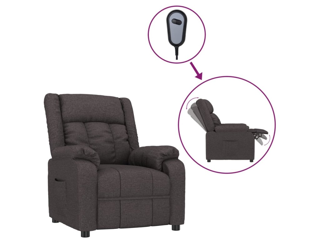 Elektrické polohovací křeslo tmavě hnědé textil 3143572