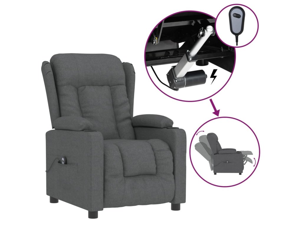 Elektrické polohovací křeslo tmavě šedé textil 3098778