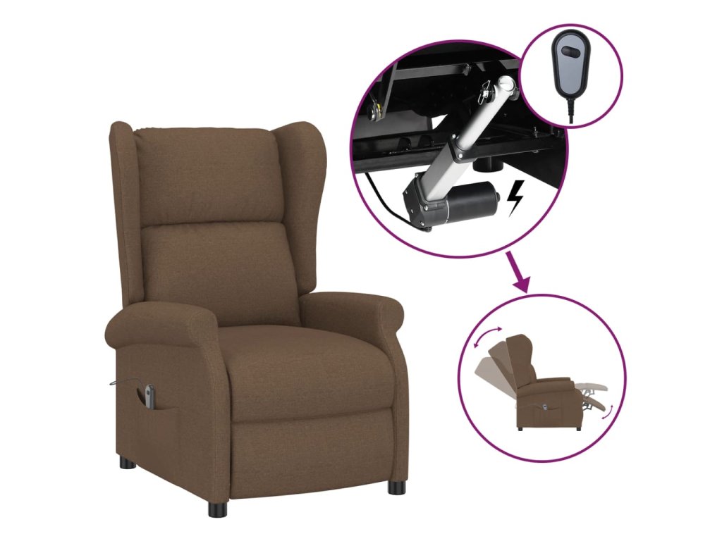 Elektrické polohovací křeslo ušák hnědé textil 3098323