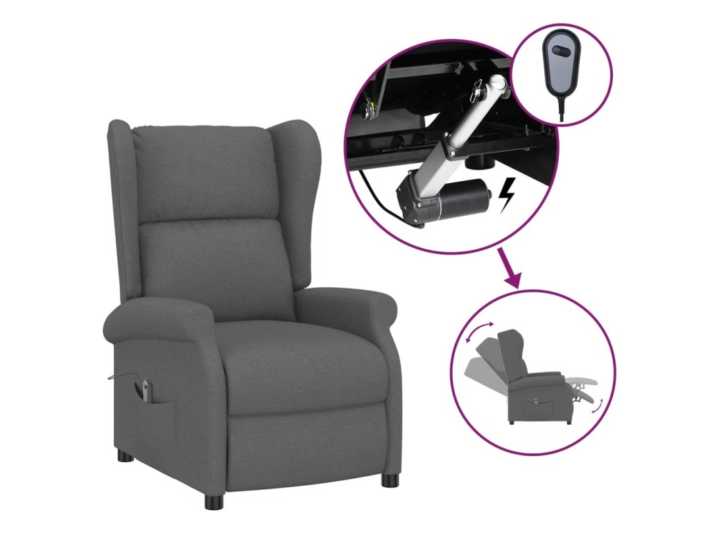 Elektrické polohovací křeslo ušák tmavě šedé textil 3098320