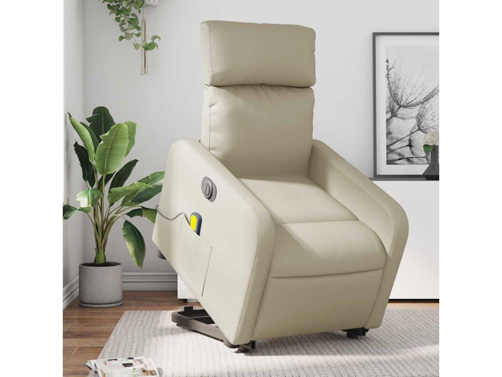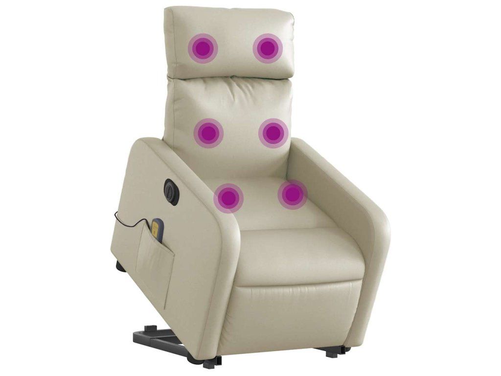 Elektrické zvedací masážní polohovací křeslo krémové umělá kůže 3206771