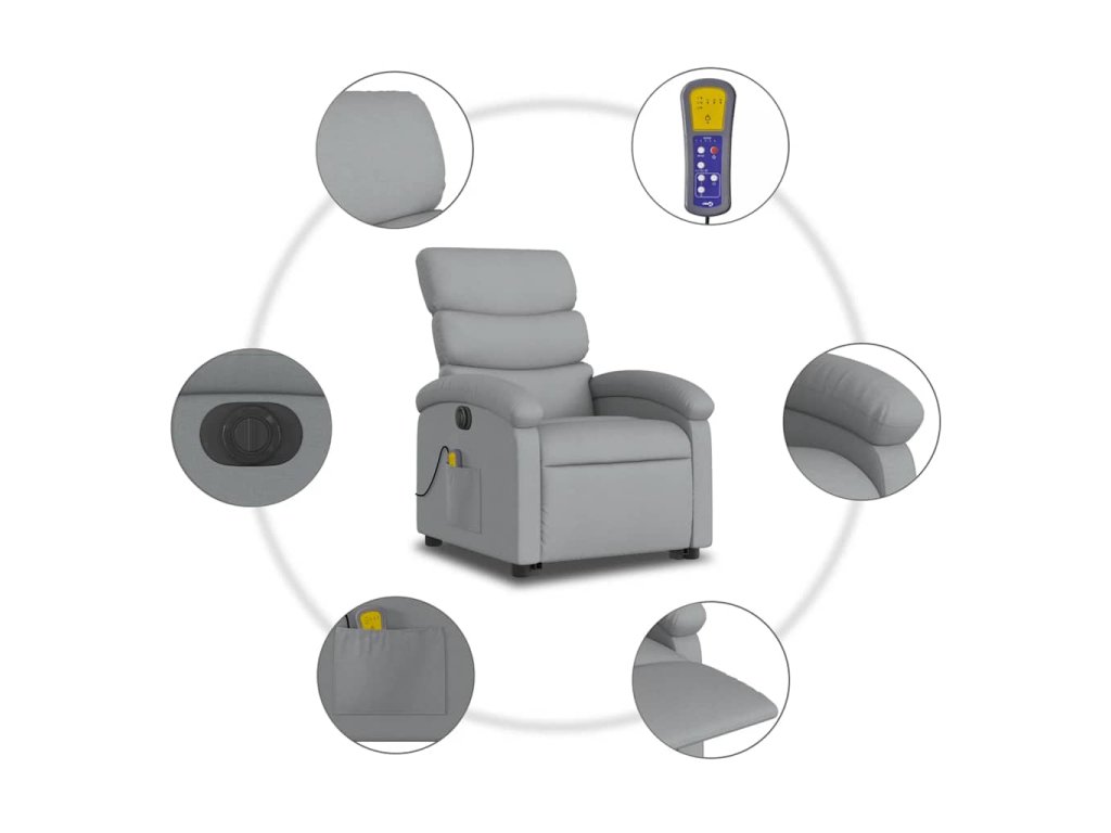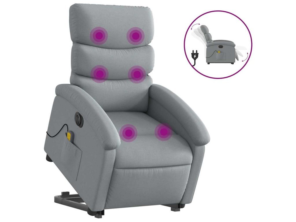 Elektrické zvedací masážní polohovací křeslo světle šedé textil 3204014