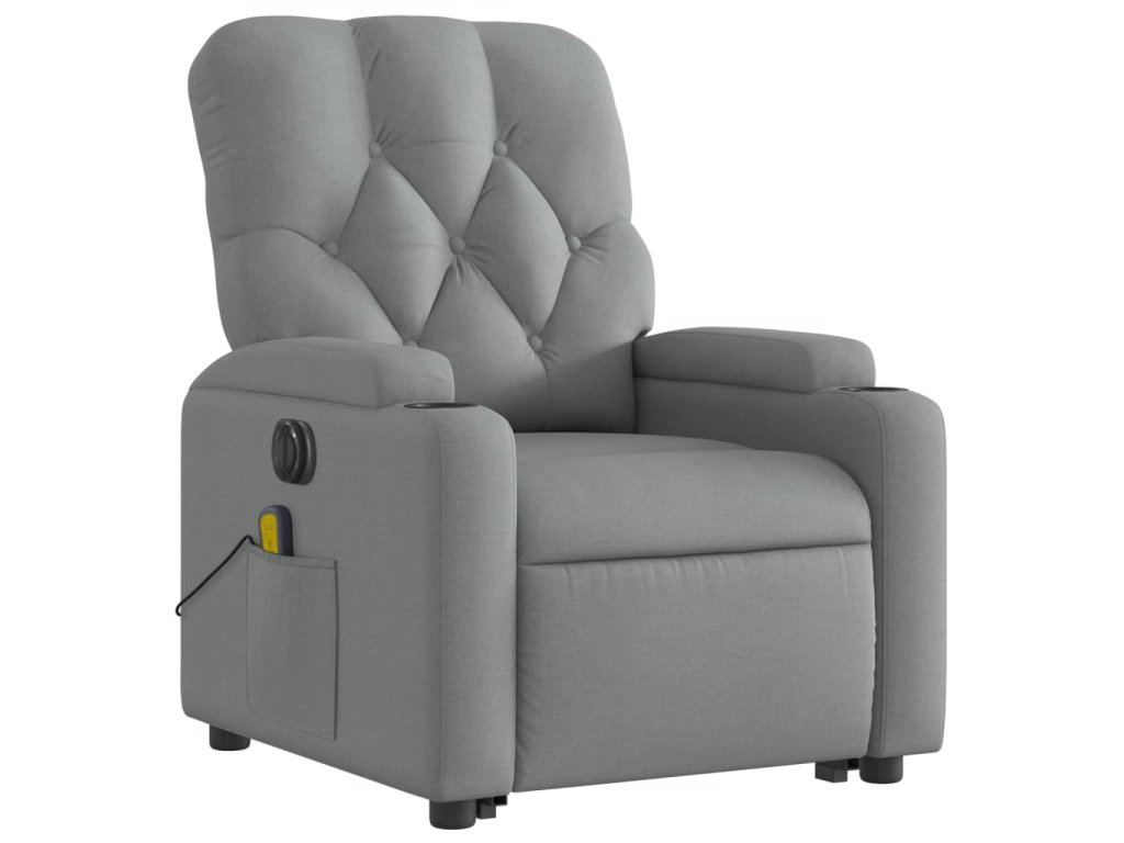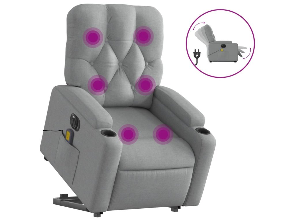 Elektrické zvedací masážní polohovací křeslo světle šedé textil 3204746