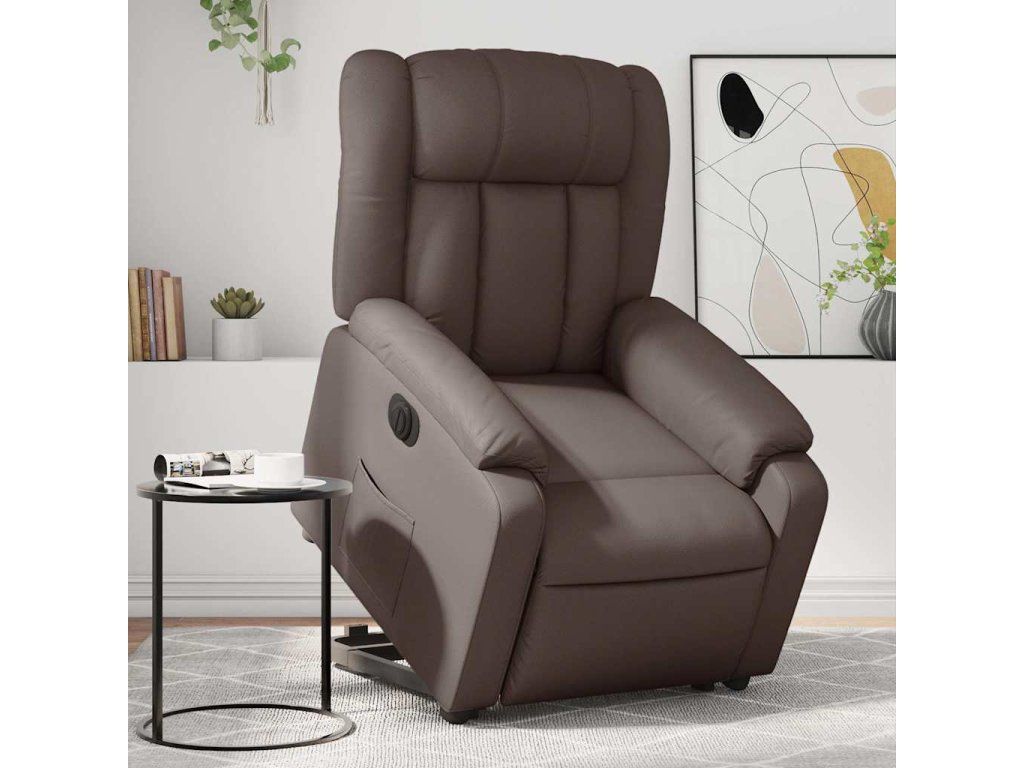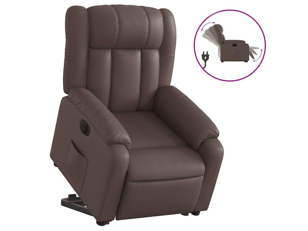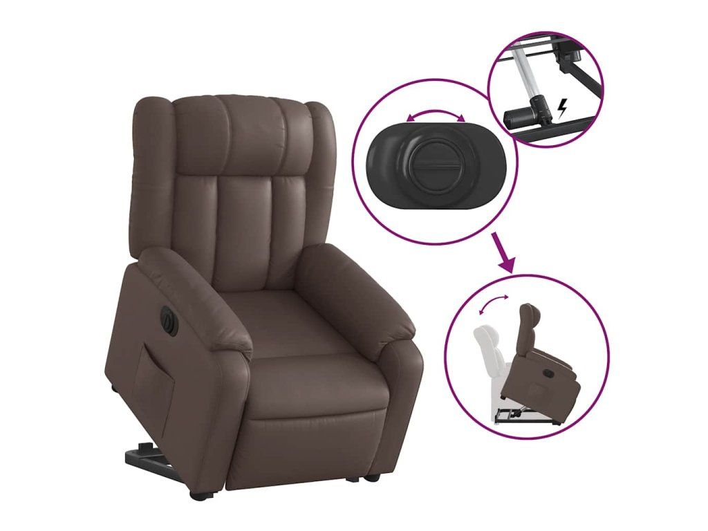 Elektrické zvedací polohovací křeslo hnědé umělá kůže 3205280