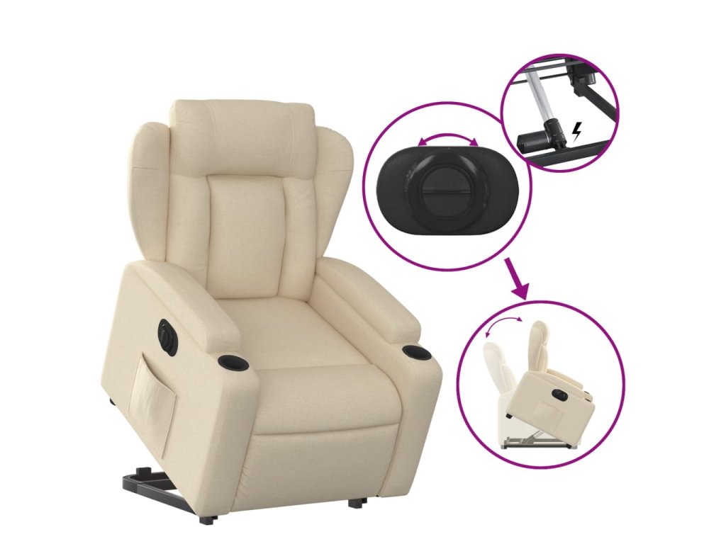 Elektrické zvedací polohovací křeslo krémové textil 3204515
