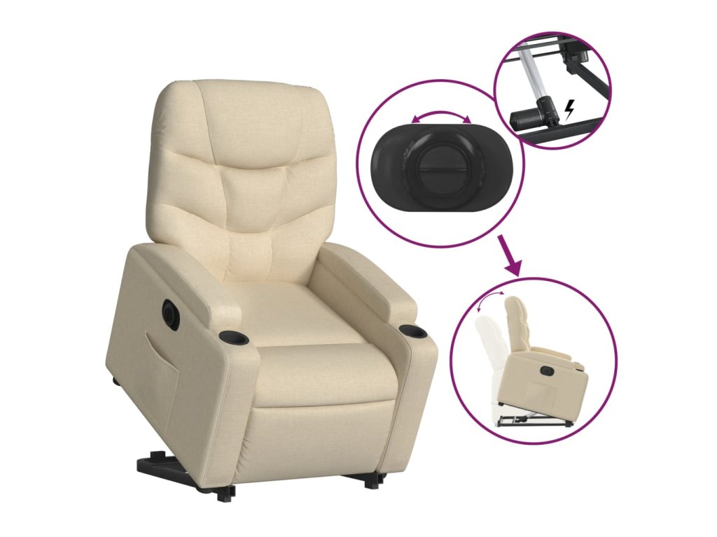 Elektrické zvedací polohovací křeslo krémové textil 3204629