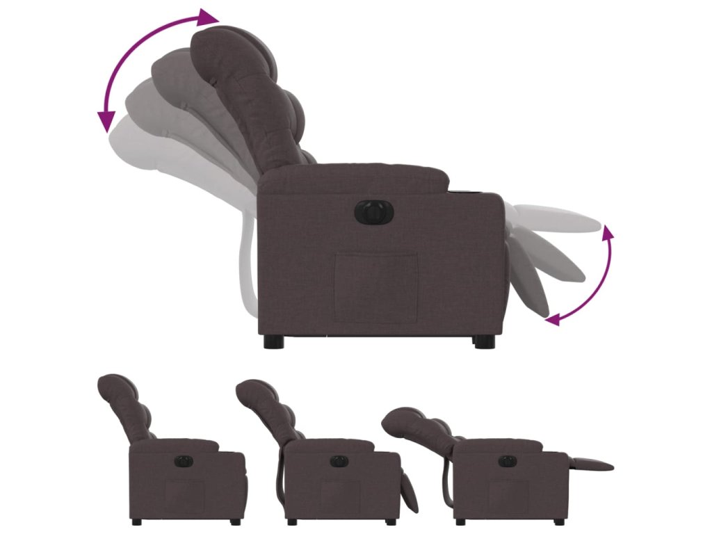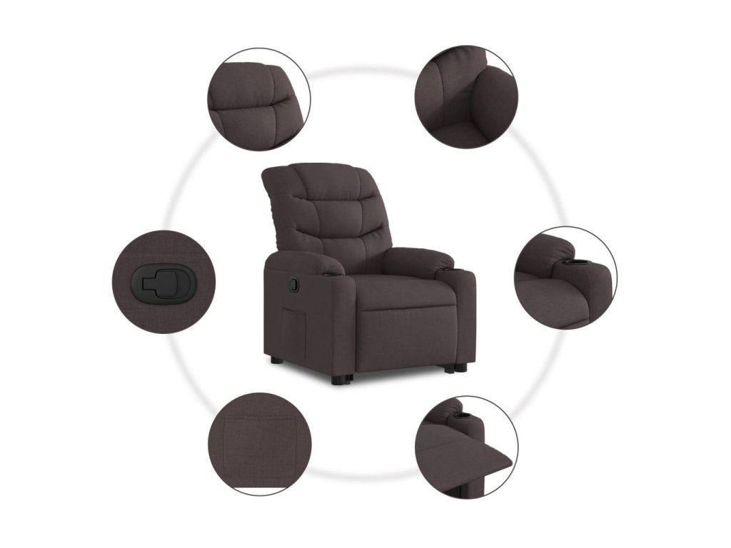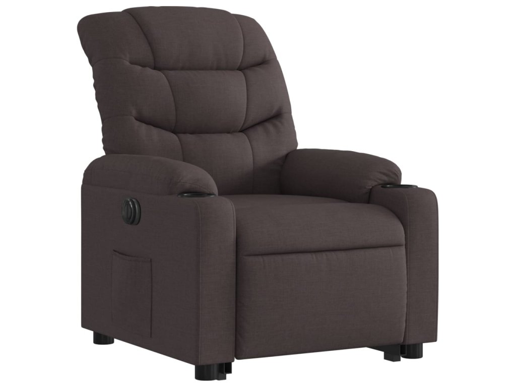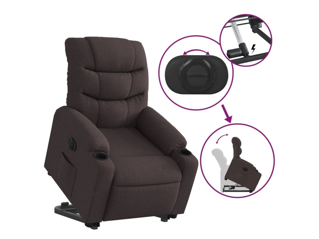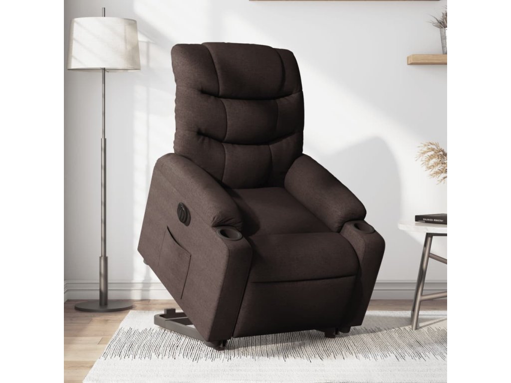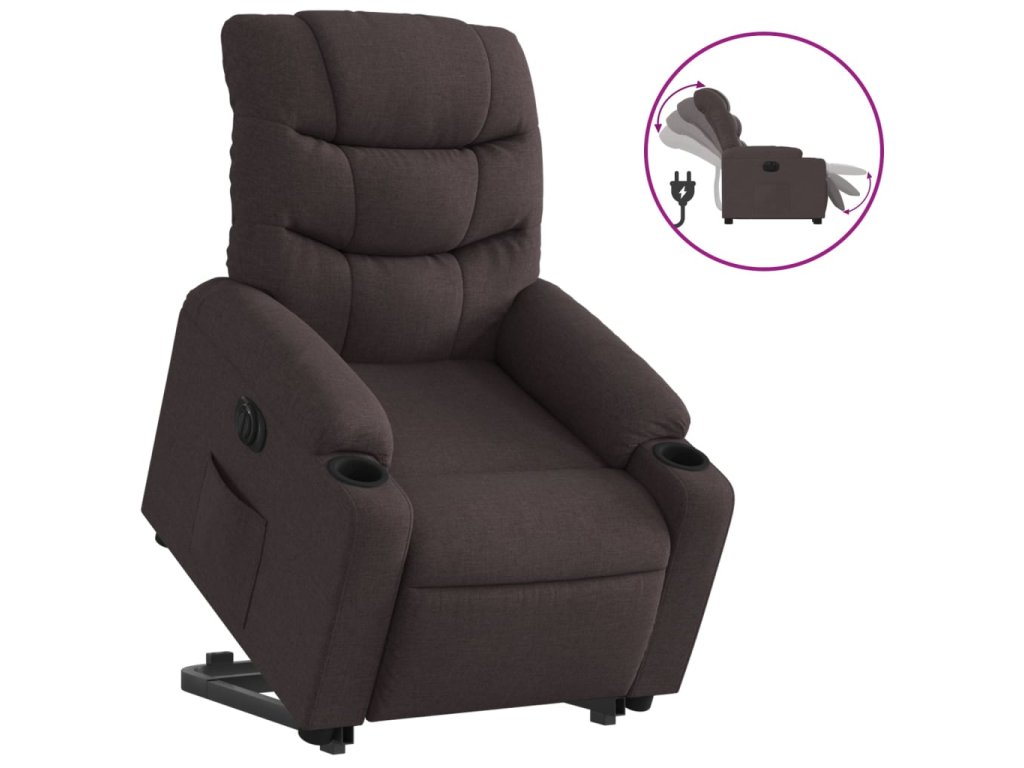 Elektrické zvedací polohovací křeslo tmavě hnědé textil 3206668