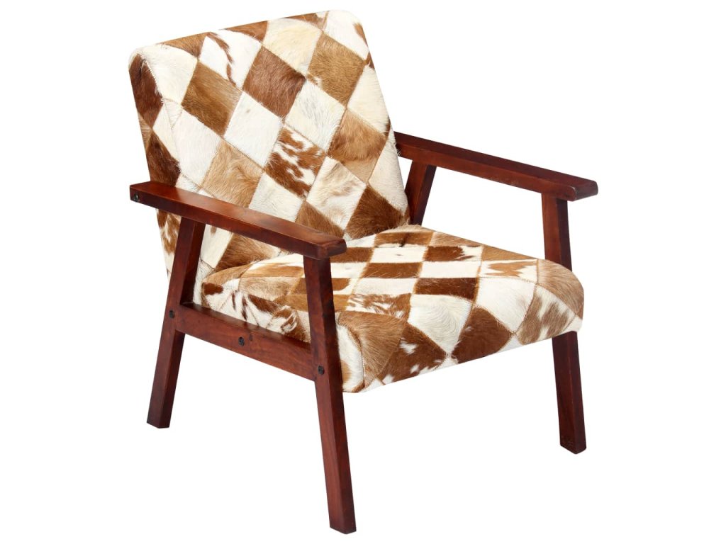 Křeslo bílo-hnědé pravá kozí kůže 247644