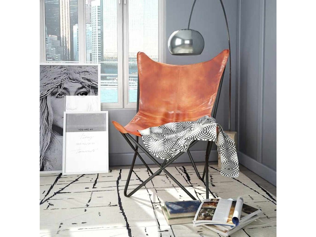 Naše křeslo z pravé kůže ve tvaru motýla je ergonomicky tvarované pro dokonalou relaxaci po náročném dni. Jeho ikonický motýlkový tvar je velmi oblíbený a hodí se do každého interiéru.