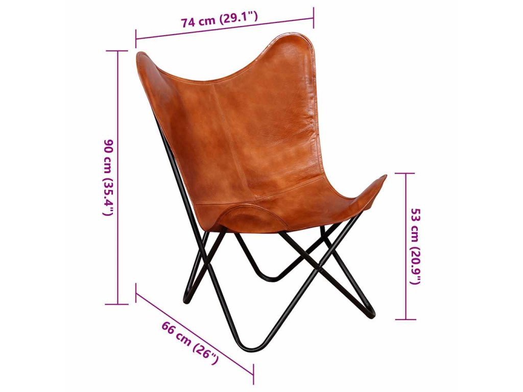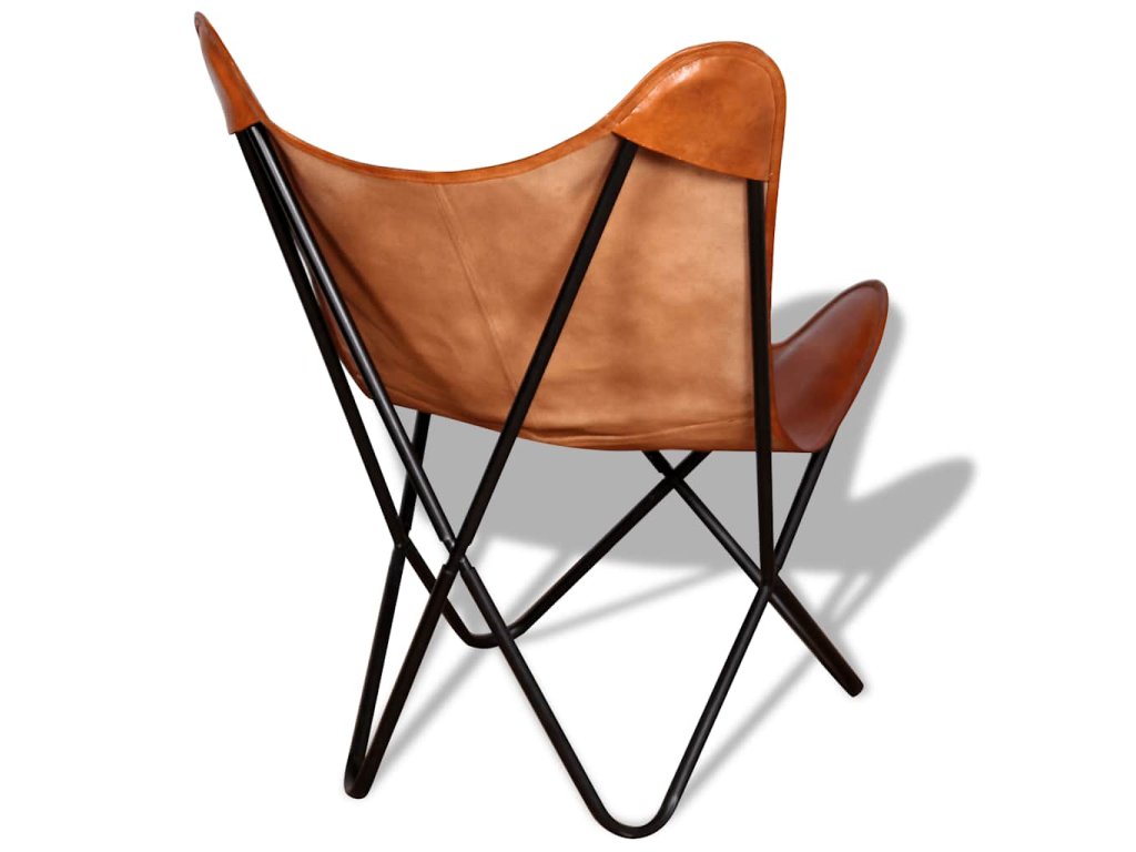 Toto klasické kožené křeslo ve tvaru motýla má jemně zaoblený sedák a opěradlo, které zaručují dostatečnou oporu zádům a maximální pohodlí. Toto retro křeslo Butterfly je vyrobeno z pravé kůže, takže je odolné a má dlouhou životnost. Čtyři rohy židle jsou vyztužené pravou kůží. Bytelný železný rám s práškovým nástřikem zvyšuje stabilitu a odolnost. Židle je lehká a pohodlná.