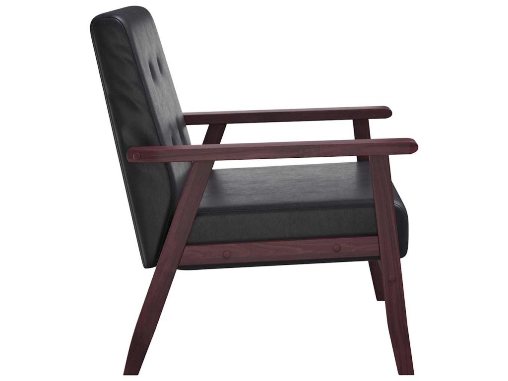 Toto retro křeslo bude skvělým a dekorativním doplňkem vašeho obývacího pokoje. Má robustní dřevěný rám, čalounění je z měkké, příjemné umělé kůže a polstrování z tlusté pěny pro zvýšené pohodlí.