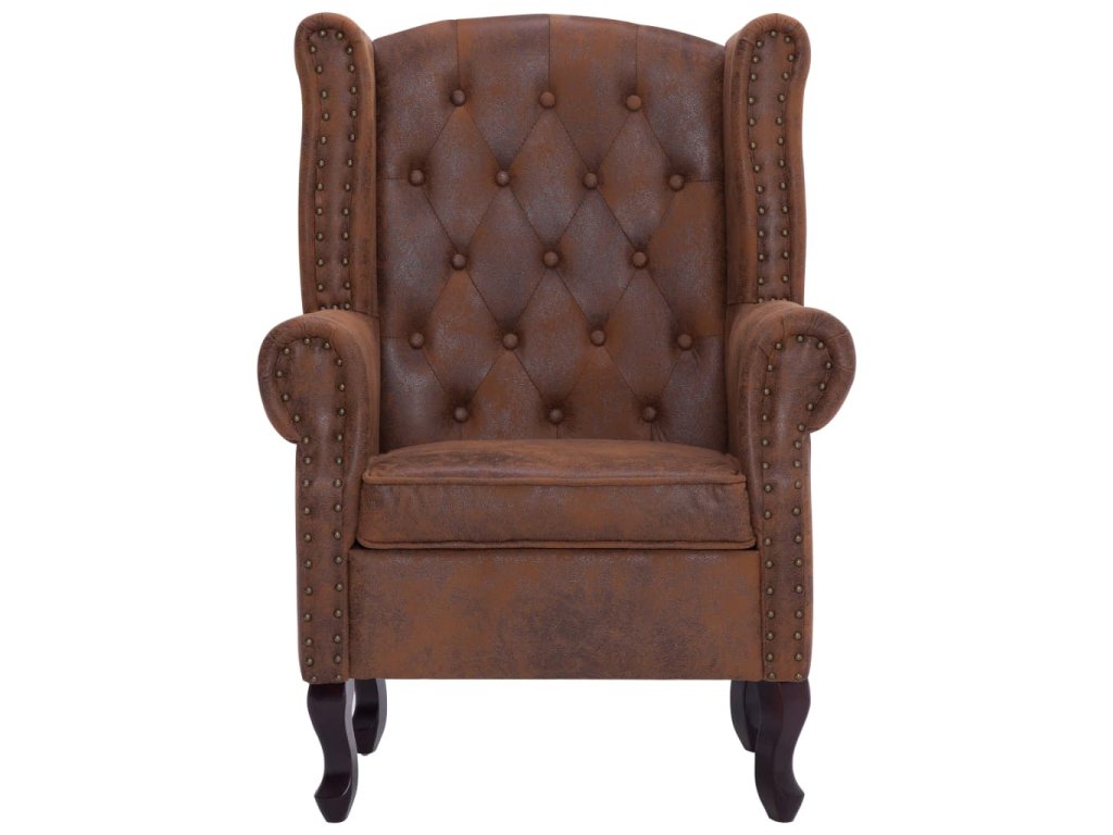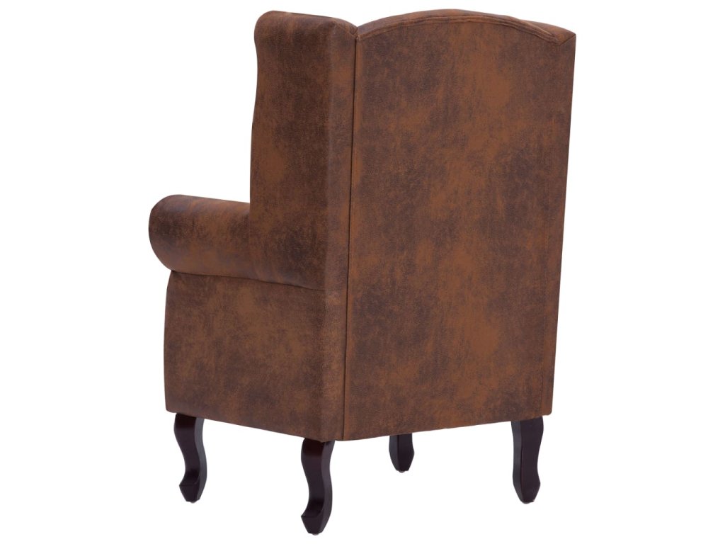 Křeslo chersterfield a podnožka hnědé umělá semišová kůže 281277