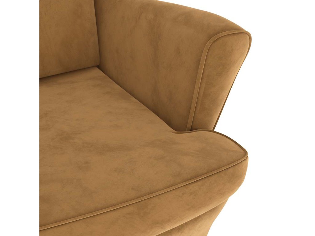 Křeslo je čalouněné sametem, je tedy velmi hebké na dotek a má dlouhou životnost. Stabilitu zajišťuje rám z překližky. Polstrované opěradlo a sedák vám zajistí pohodlné posezení.