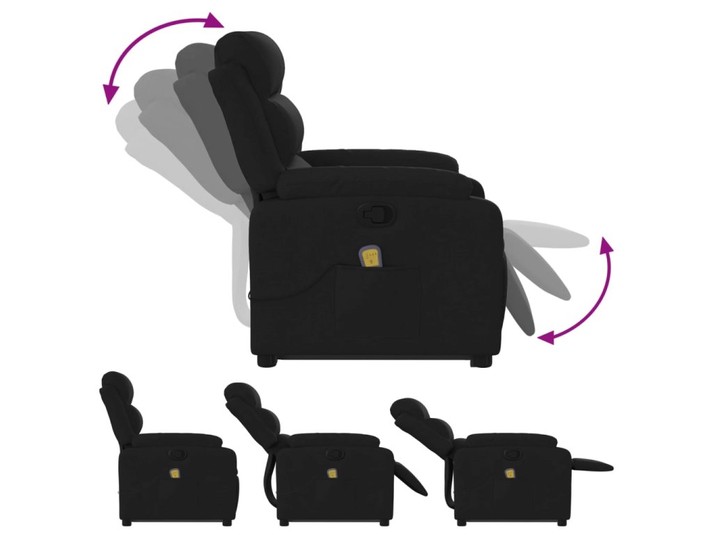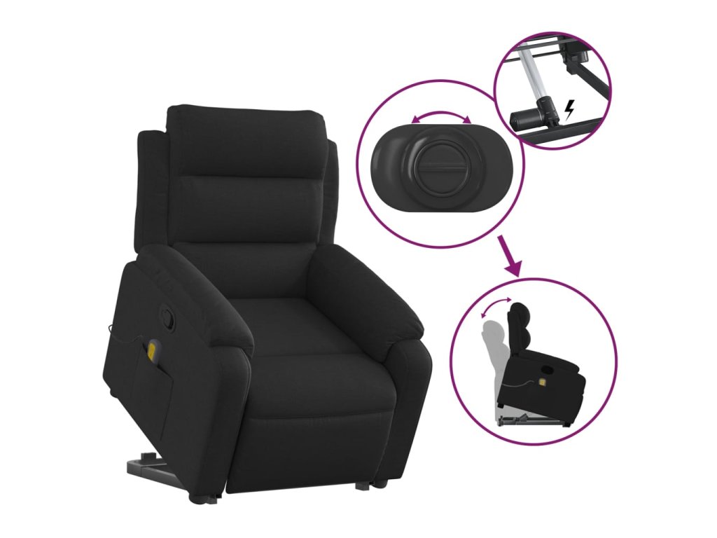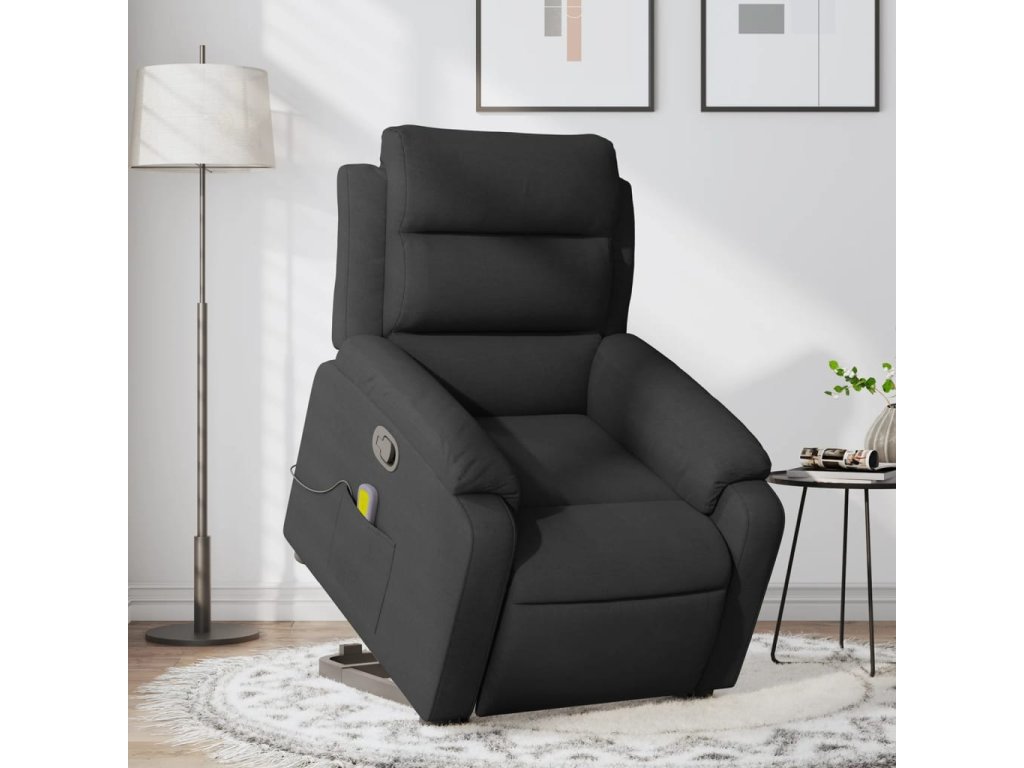 Zvedací masážní polohovací křeslo černé textil 3204994