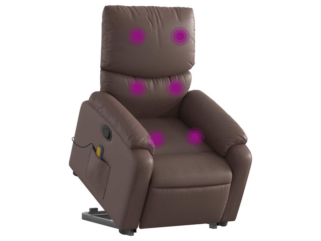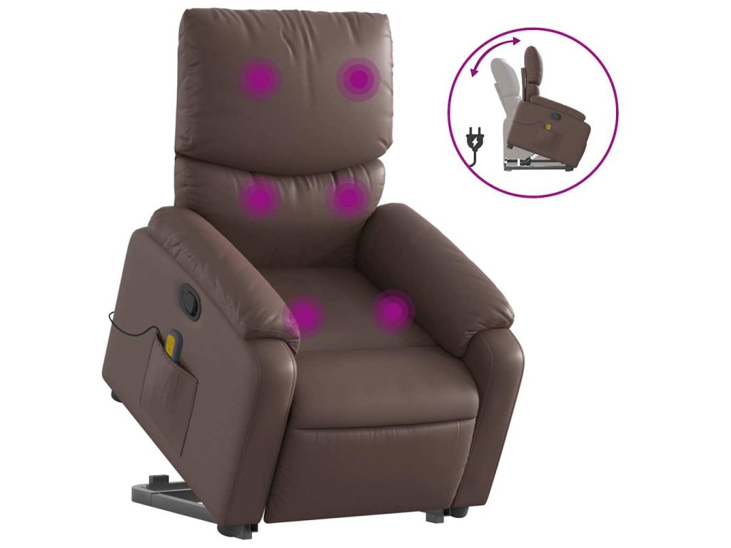 Zvedací masážní polohovací křeslo hnědé umělá kůže 3204895