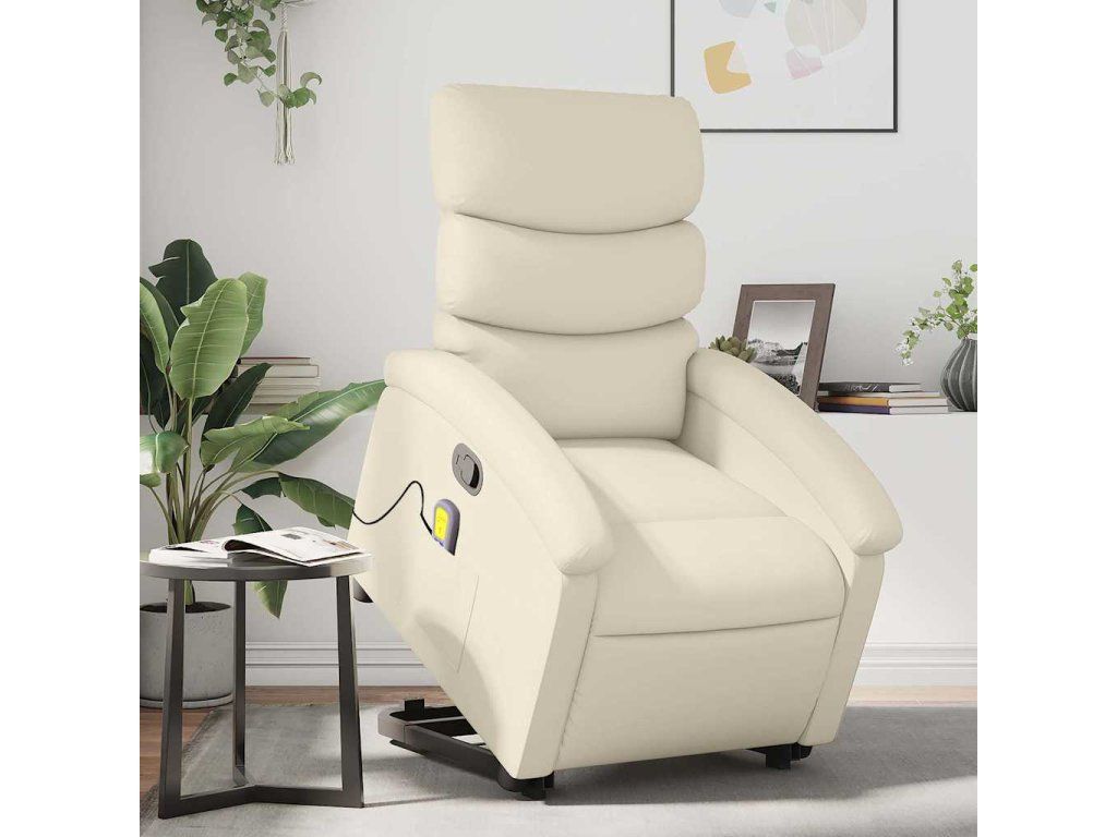 Zvedací masážní polohovací křeslo krémové umělá kůže 3204048