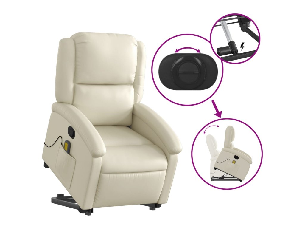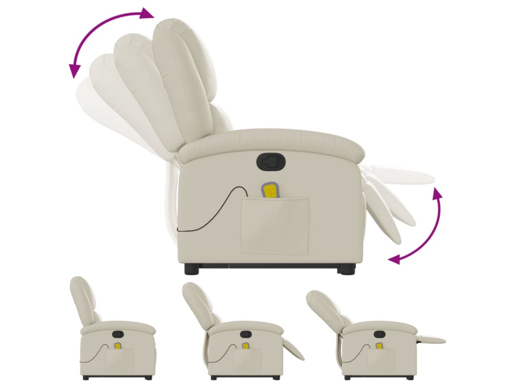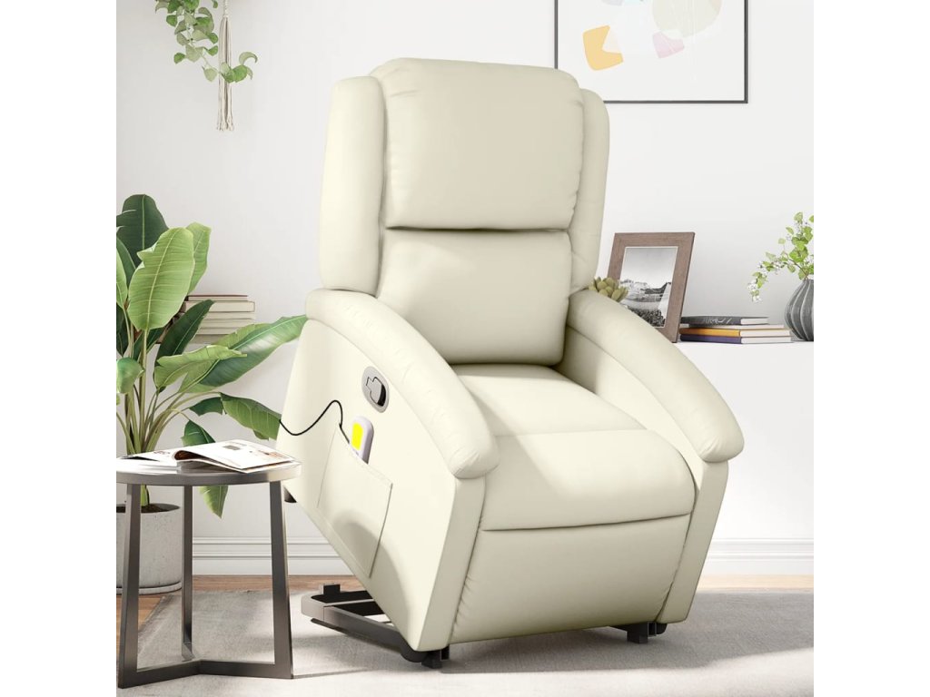 Zvedací masážní polohovací křeslo krémové umělá kůže 3204234