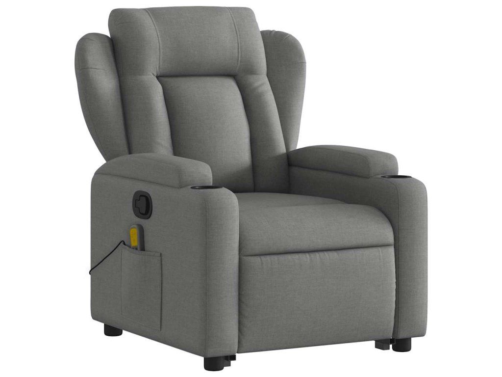 Zvedací masážní polohovací křeslo tmavě šedé textil 3204495