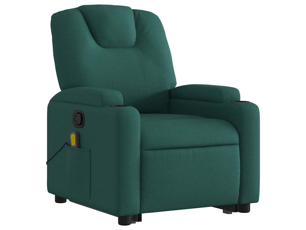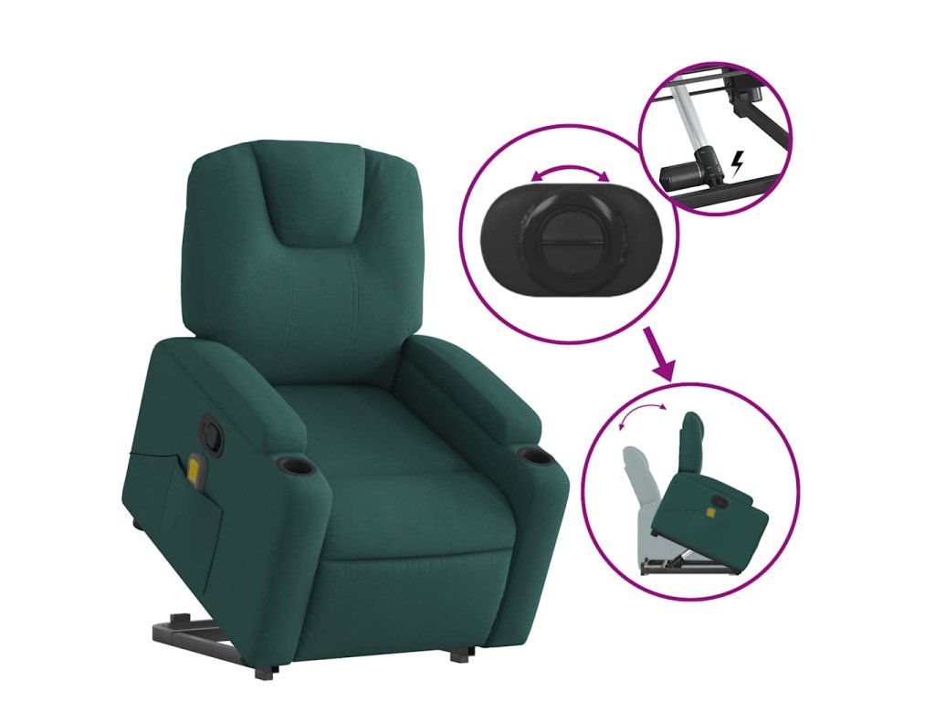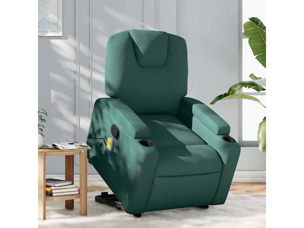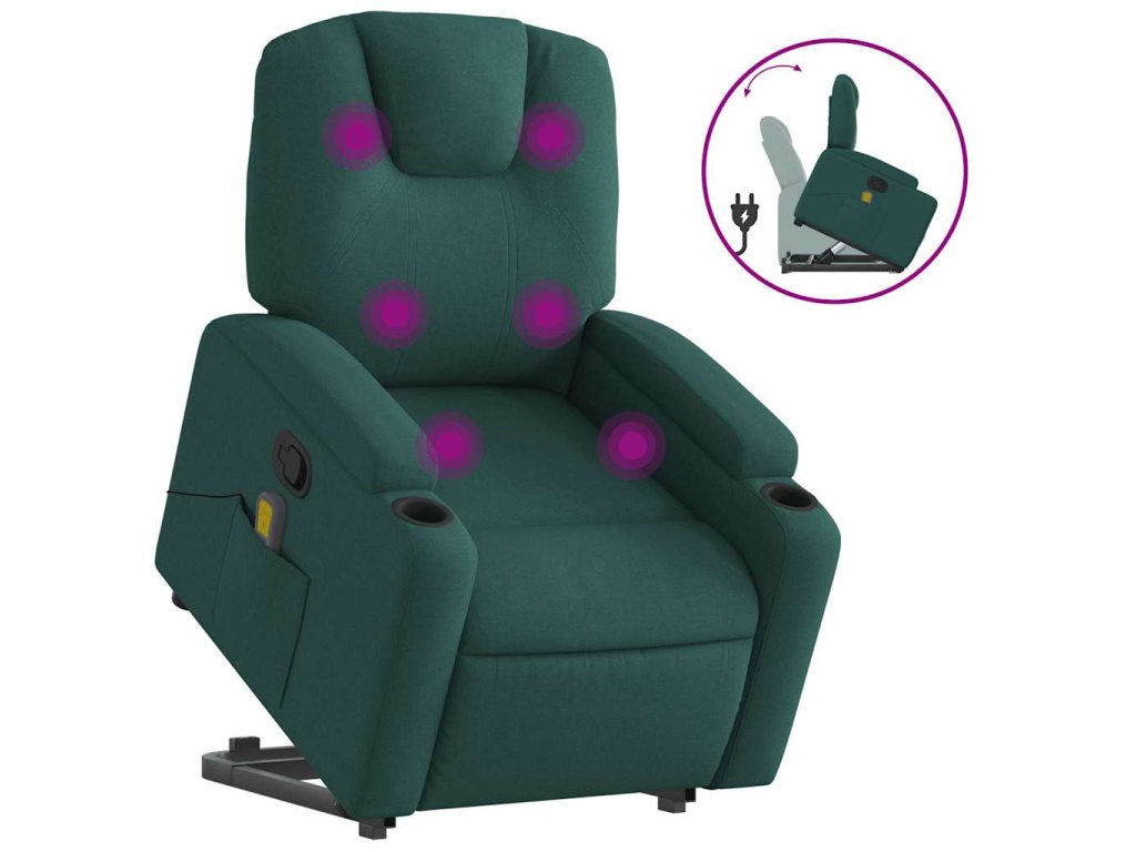 Zvedací masážní polohovací křeslo tmavě zelené textil 3204386