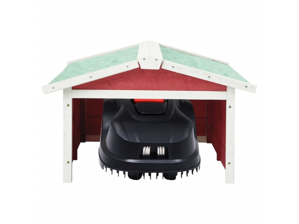 Garáž na robotickou sekačku 72x87x50 cm červená a bílá jedle 170881