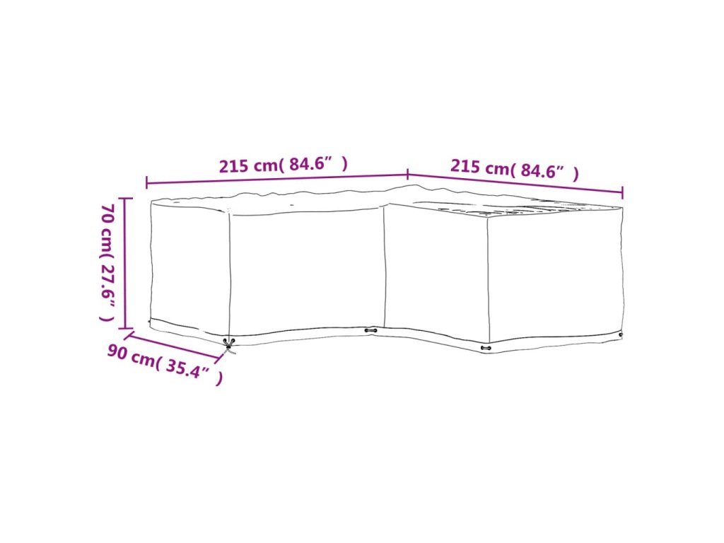 Plachta na zahradní nábytek tvar L 16 oček 215 x 215 x 70 cm 319315