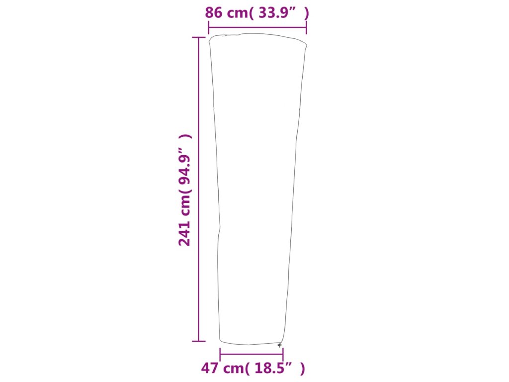 - Větruodolný design: Tento potah na slunečník je opatřen stahovací šňůrkou a zipem, takže ho lze pevně přichytit a zabránit jeho odfouknutí silným větrem.