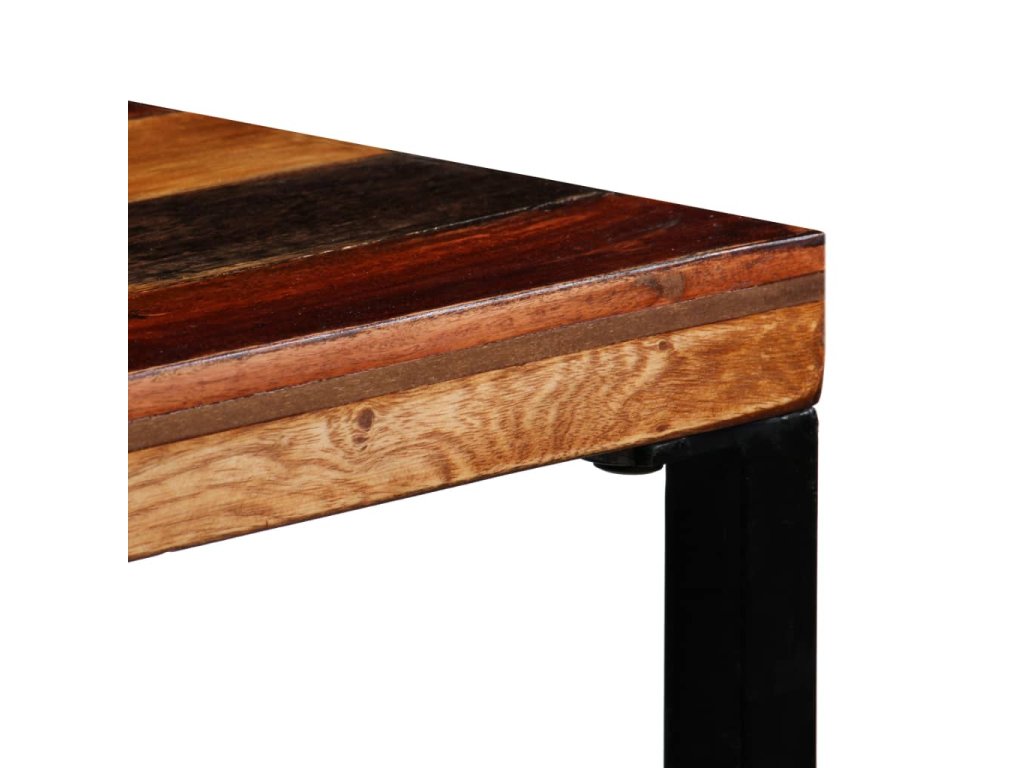 Barový stůl má pevnou a odolnou horní desku, která je vyrobená z masivního recyklovaného dřeva. Recyklované dřevo pochází z trámů, podlah a podpěrných nosníků ze starých budov určených k demolici. Může se tedy skládat z různých typů dřeva, jako jsou borovice, teak, buk, dub, cedr, mangovník, akácie atd. To znamená, že recyklované dřevo má charakteristiky všech těchto rozličných druhů dřevin. Navíc je již zestárlé, ošlehané a vyschlé, takže se nesmršťuje ani neohýbá. Barevný kontrast jednotlivých druhů dřeva dává stolu jedinečný vzhled a překrásná textura činí každý kus nábytku jedinečným a lehce odlišným od ostatních. Ocelové nohy přispívají k pevnosti a stabilitě stolu a zároveň podtrhují jeho industriální šarm.