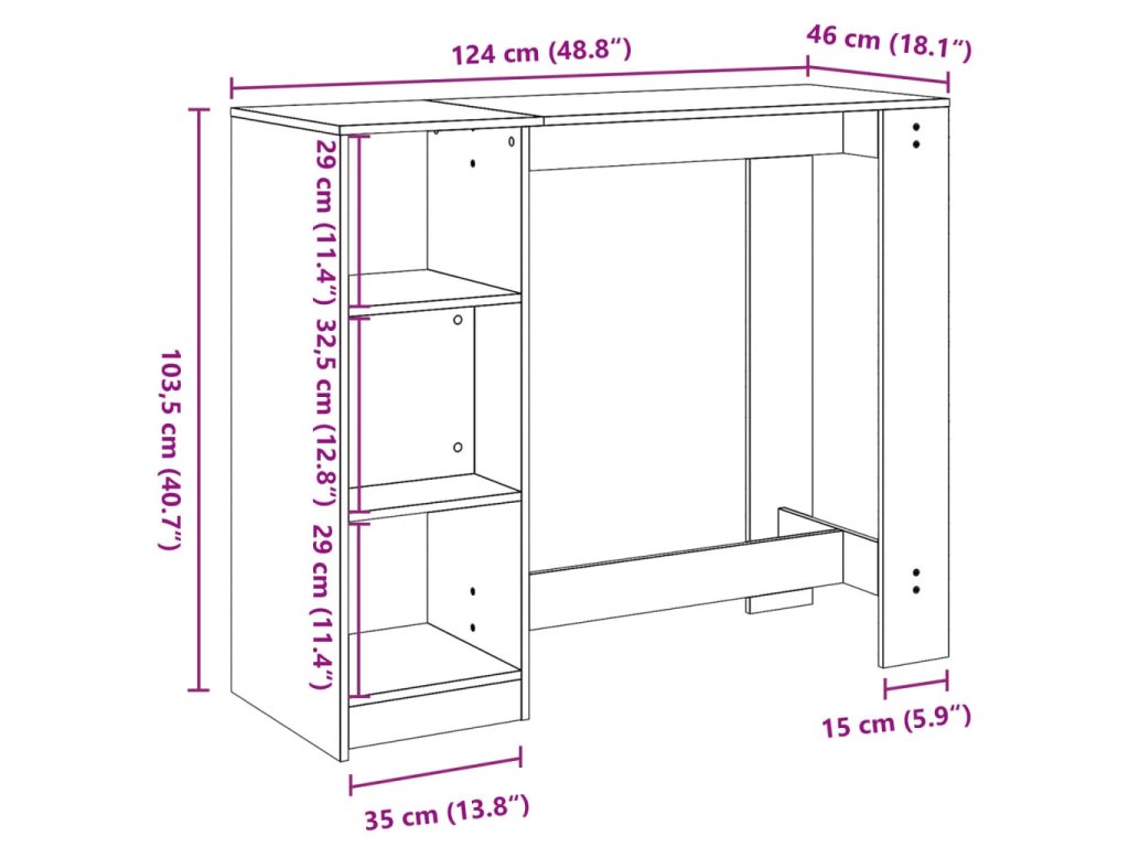 Barový stůl s policí šedý sonoma 124 x 46 x 103,5 cm kompozit 854396