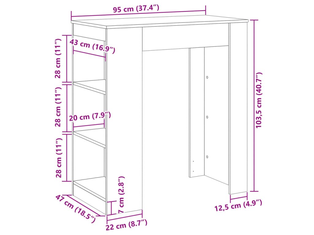 Barový stůl s regály bílý 95 x 47 x 103,5 cm kompozitní dřevo 854382