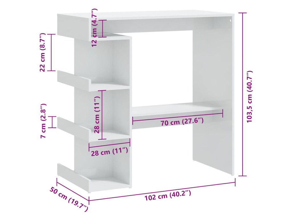 Barový stůl s úložným regálem bílý vysoký lesk 100x50x101,5 cm 809455